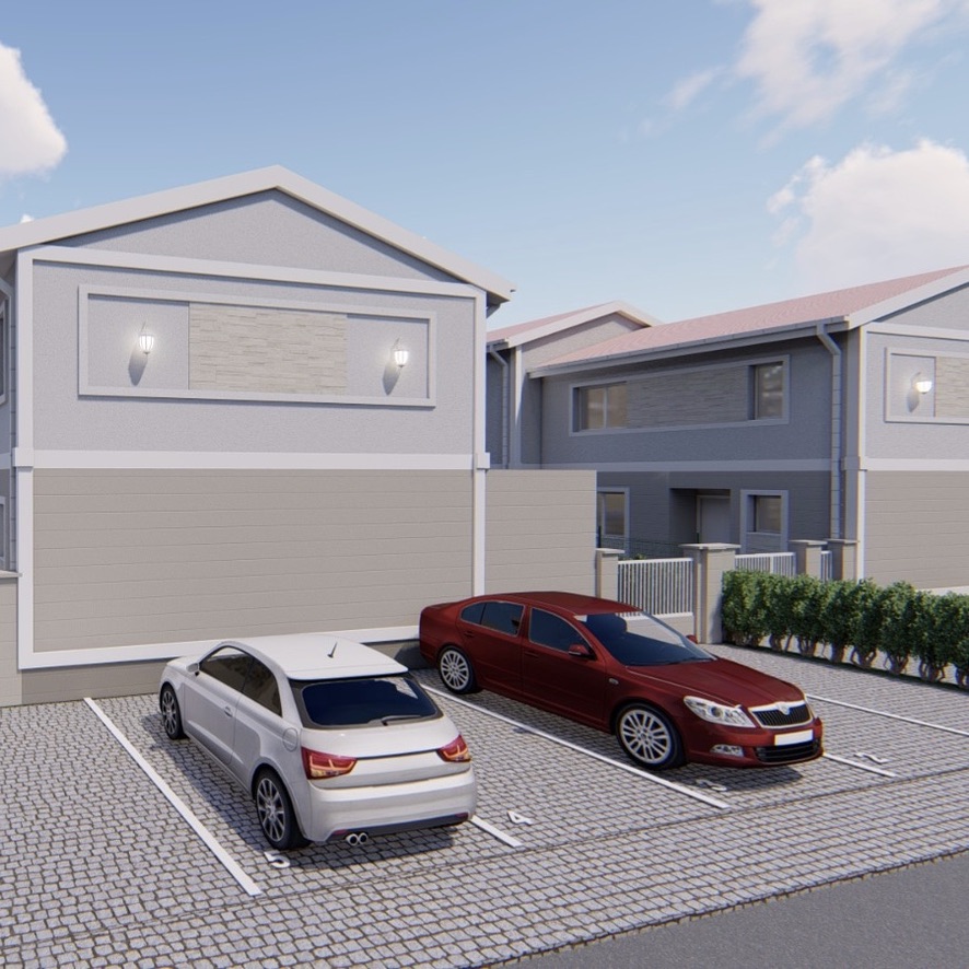 - Fiecare proprietate este împrejmuită cu gard din șipca metalică, culoare albă