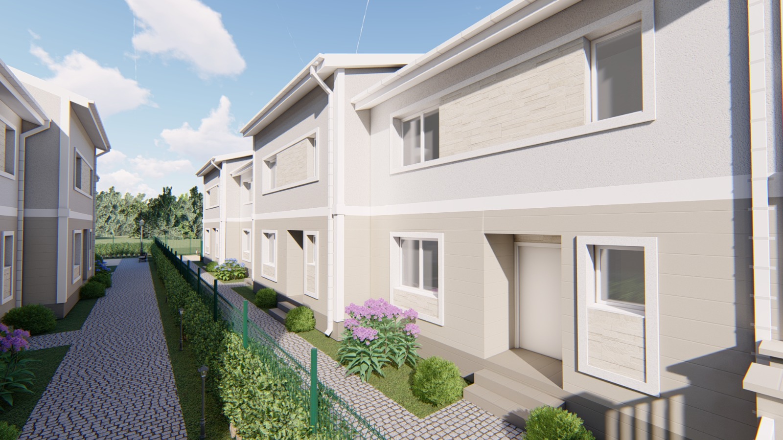 - Trotuarul din fața caselor este amenajat astfel încât să fie cât mai ușor de întreținut